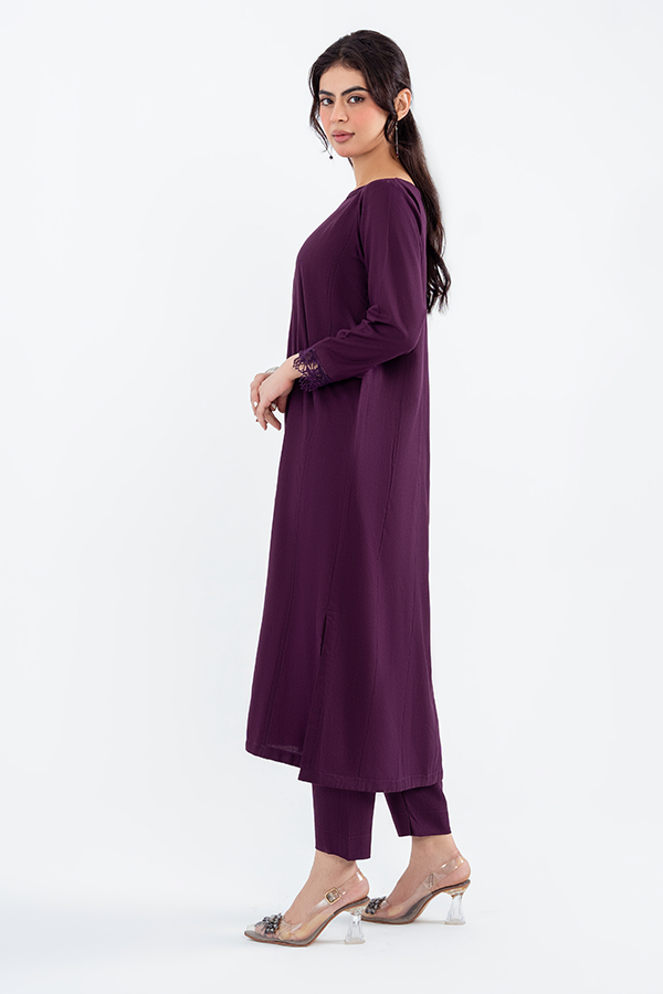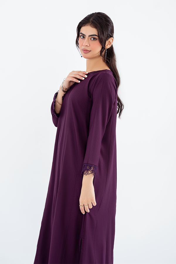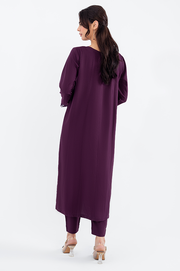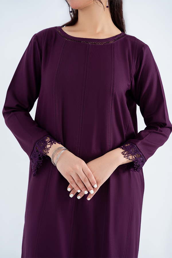 Elevate your wardrobe with our stunning Plum Perfect Two-Piece Co-ord Set, expertly crafted from a luxurious. Streamlined design for a sleek, modern look. The beautifully dyed A-line shirt boasts, Paneled design with intricate black anchor thread details on each panel, Delicate lace trim adding a touch of femininity, Relaxed fit with a flowy silhouette.