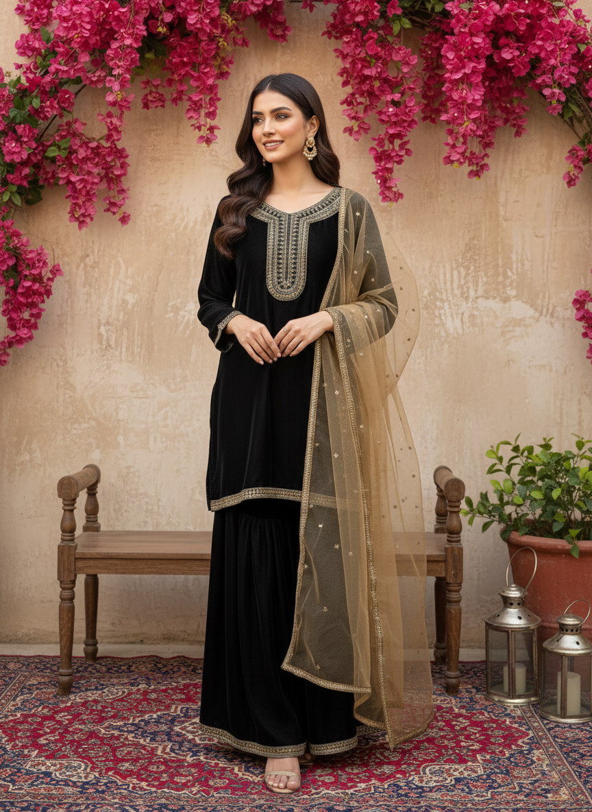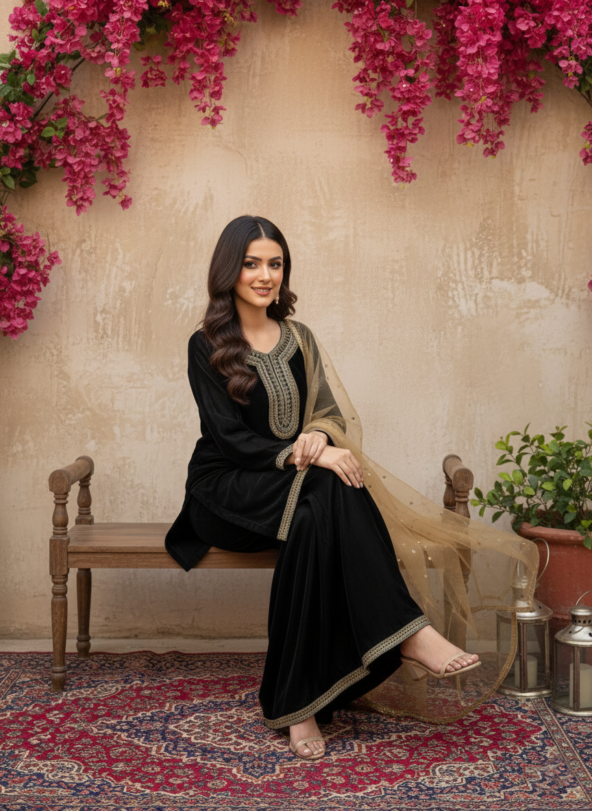 - Fabric: Velvet (Shirt & Shalwar), Net (Dupatta)