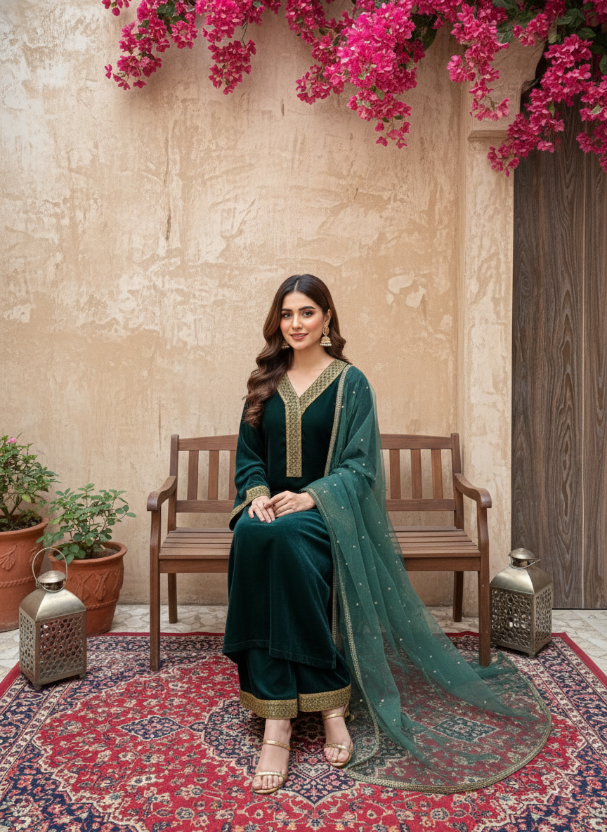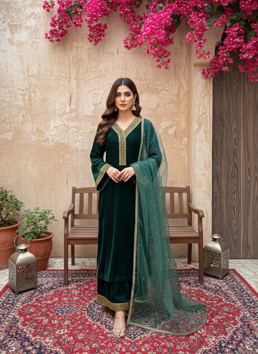 - Fabric: Velvet (Shirt & Trouser), Net (Dupatta)