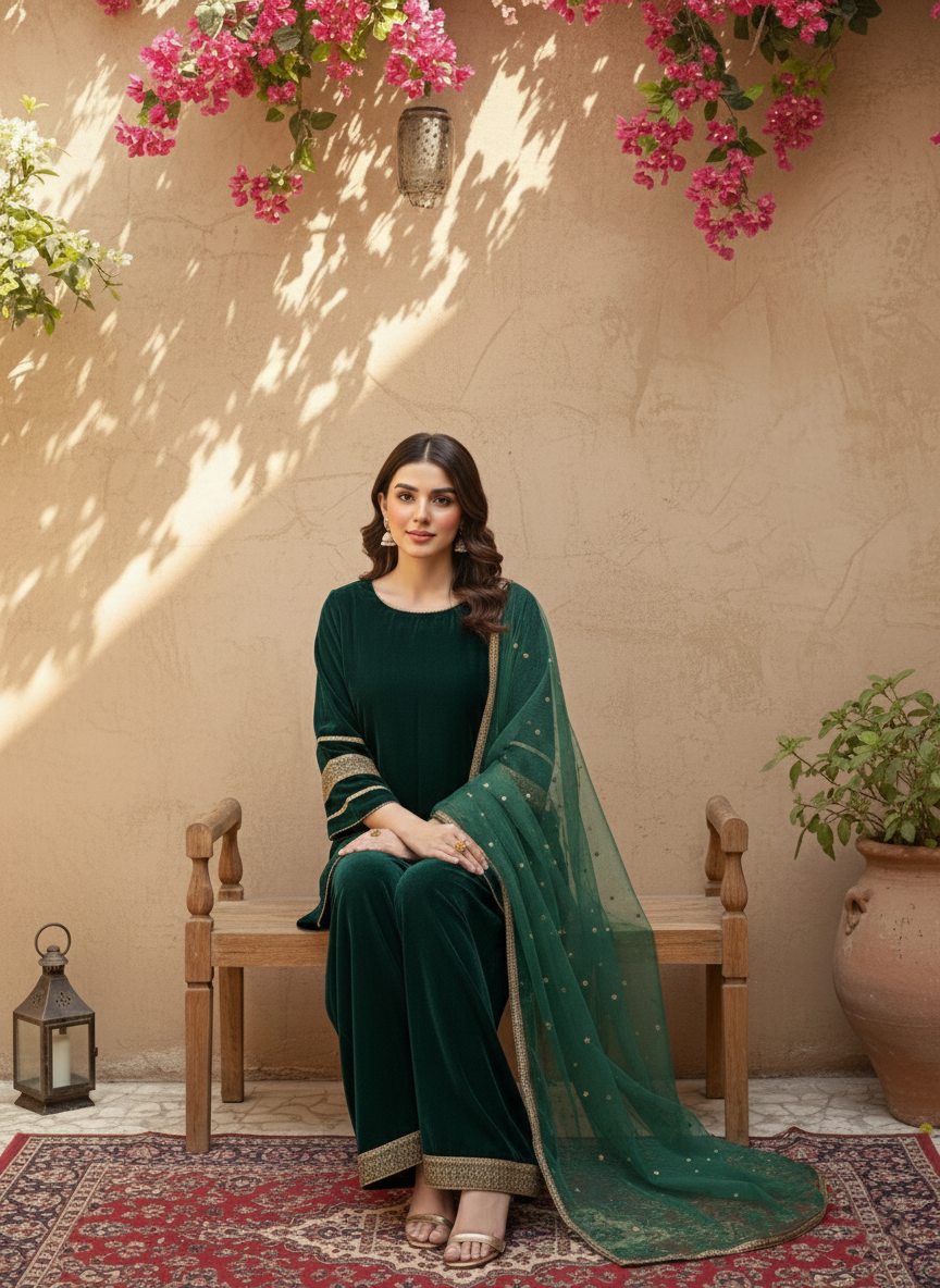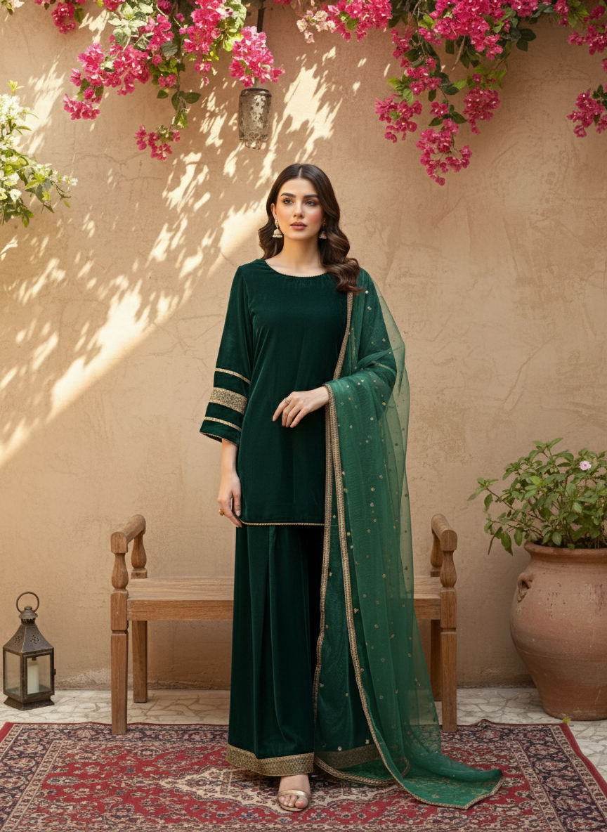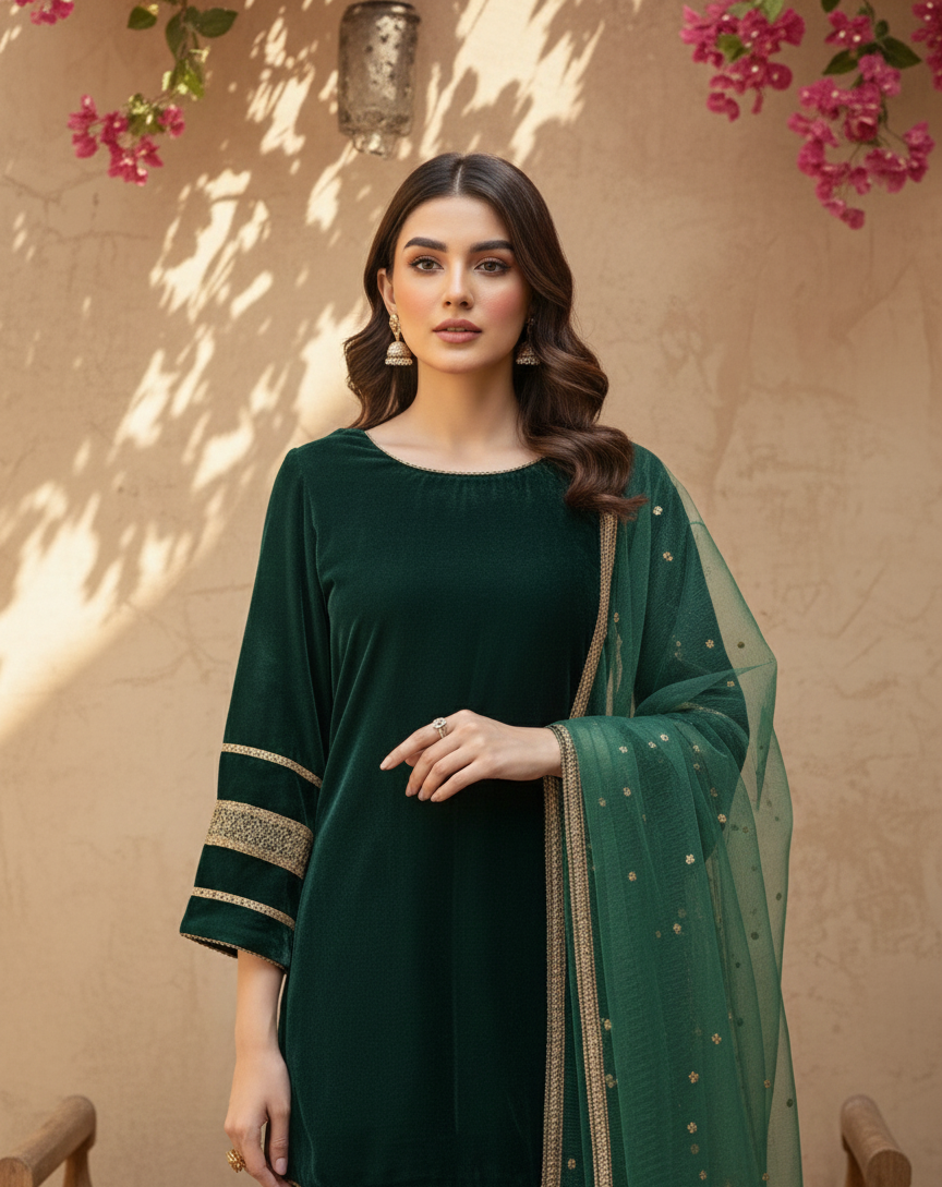 - Fabric: Velvet (Shirt & Shalwar), Net (Dupatta)