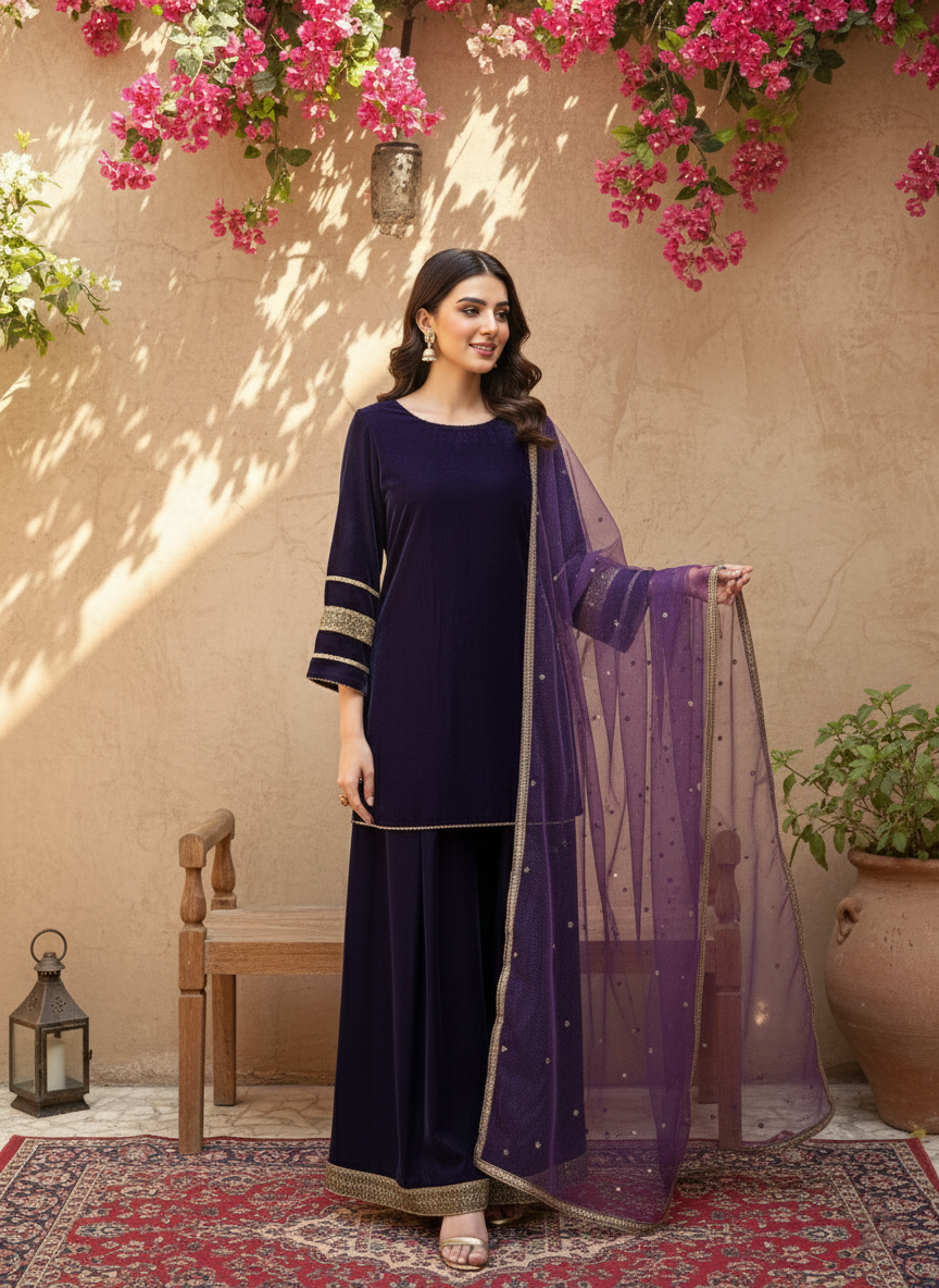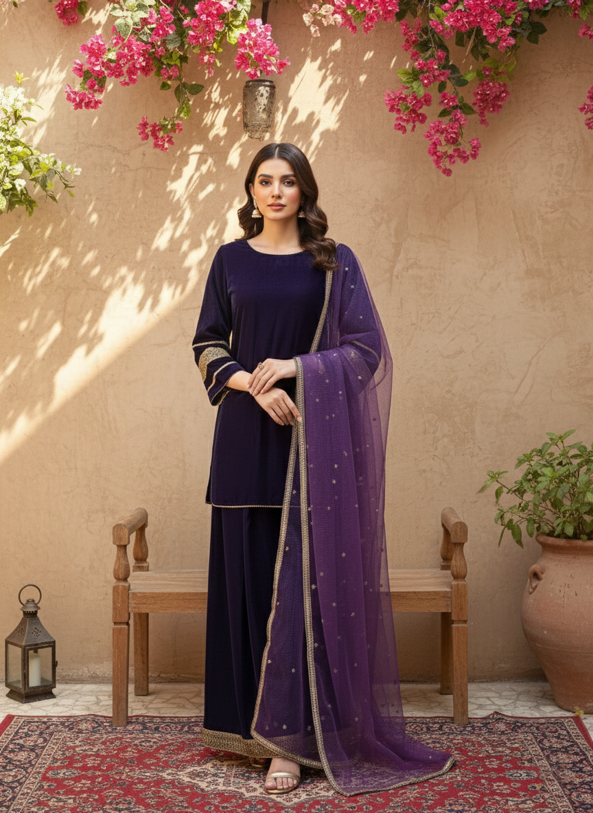 - Fabric: Velvet (Shirt & Shalwar), Net (Dupatta)