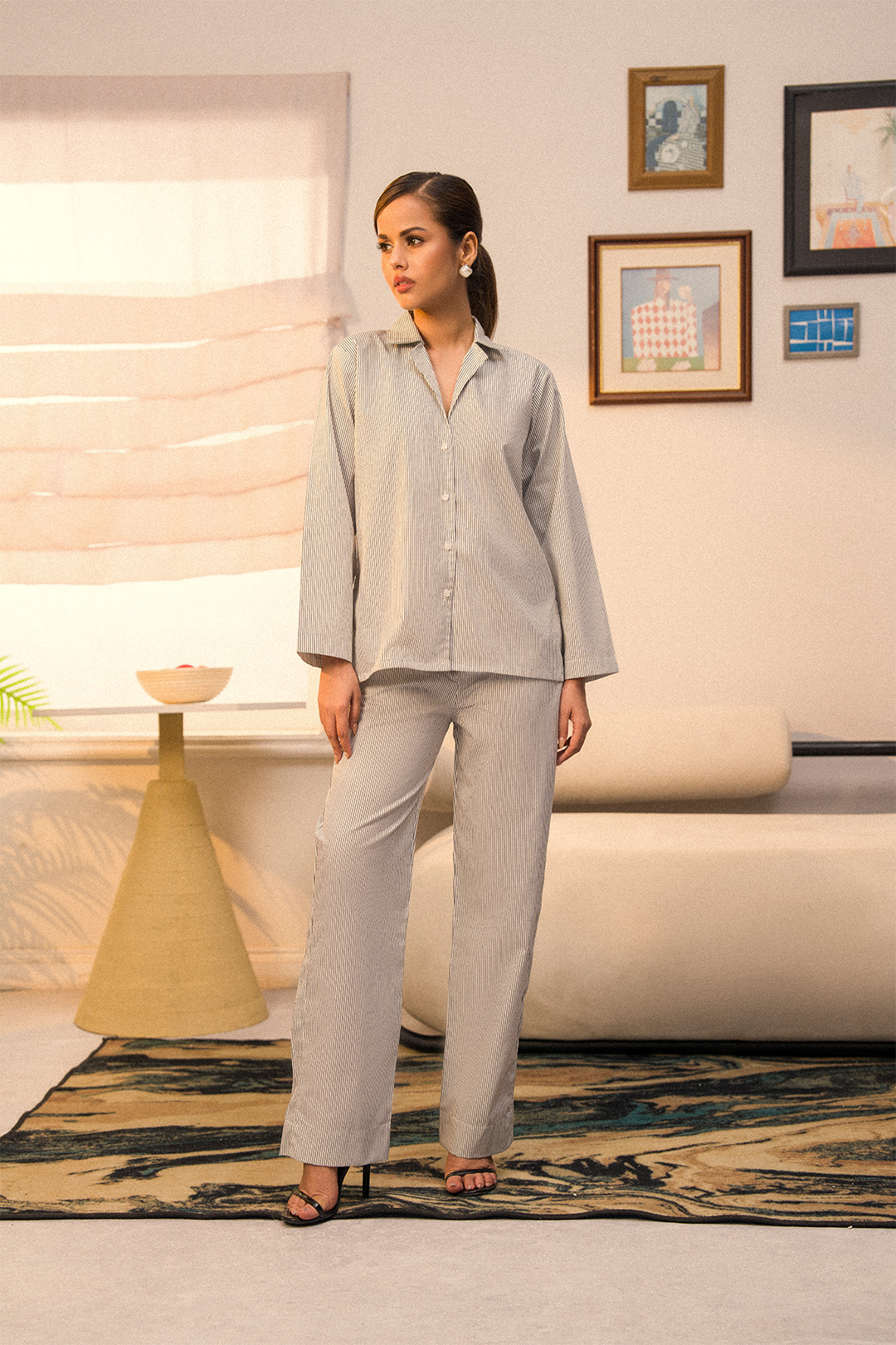 Design Detail: A timeless flat collar button-down shirt, tailored for effortless elegance, your go-to for chic, everyday sophistication.